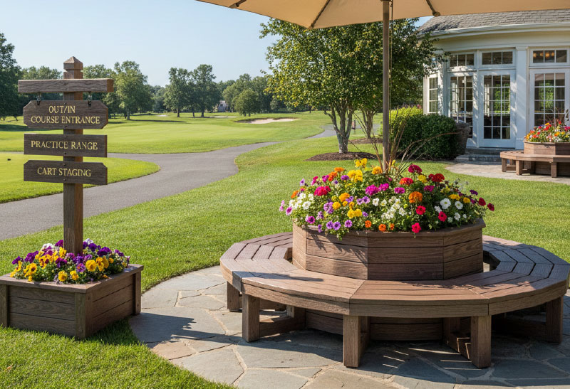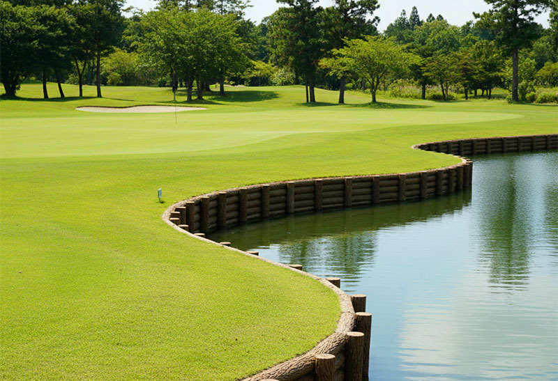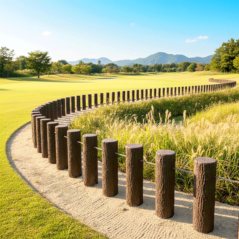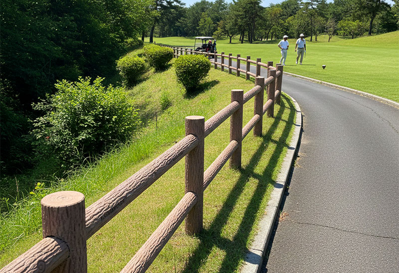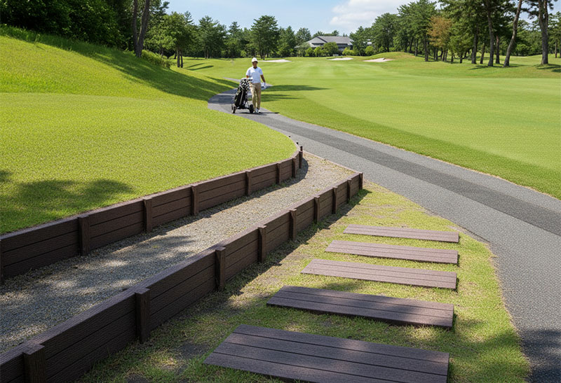 ゴルフ場において、プラ擬木は、長期耐久性とメンテナンス低減という大きな利点から、様々な場所で活用されています。