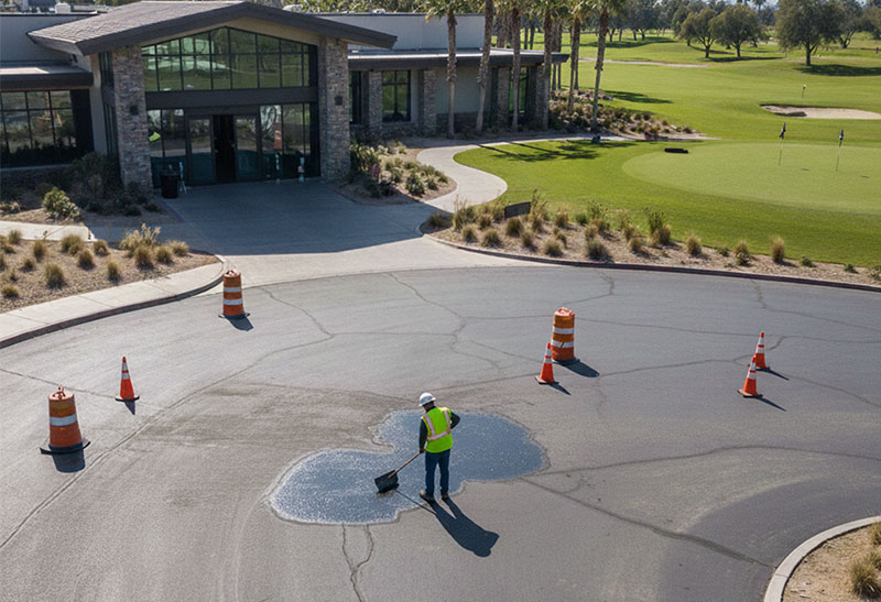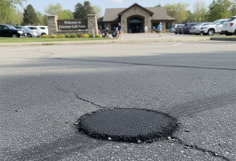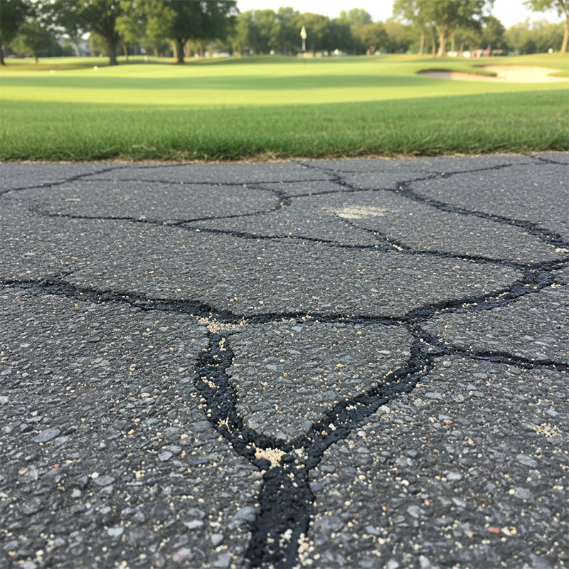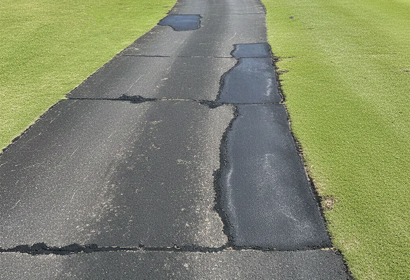 アスファルト補修材は、ゴルフ場において主にカート道、駐車場、管理用道路のひび割れや窪みの補修などに活用される必需品です。